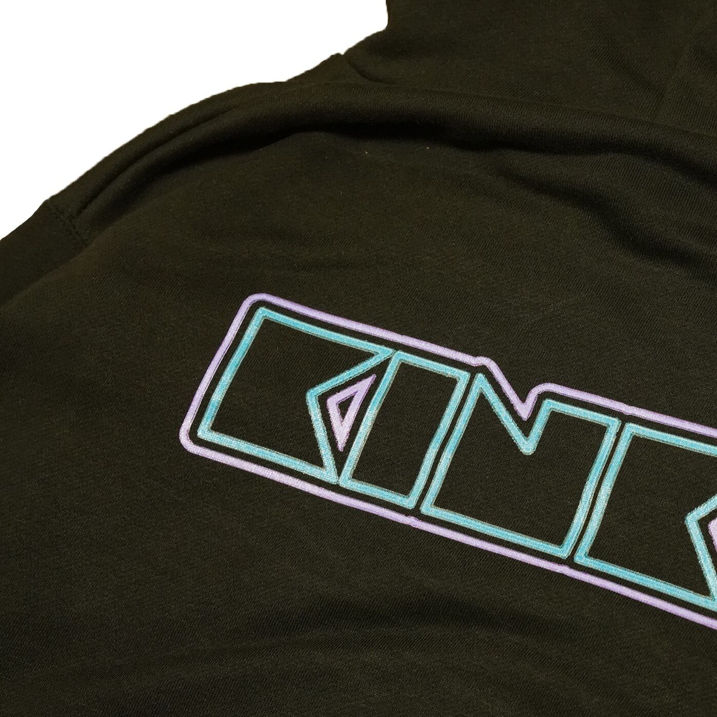 左胸元に刺繍、背後にはプリントでKINKYと表記しています。