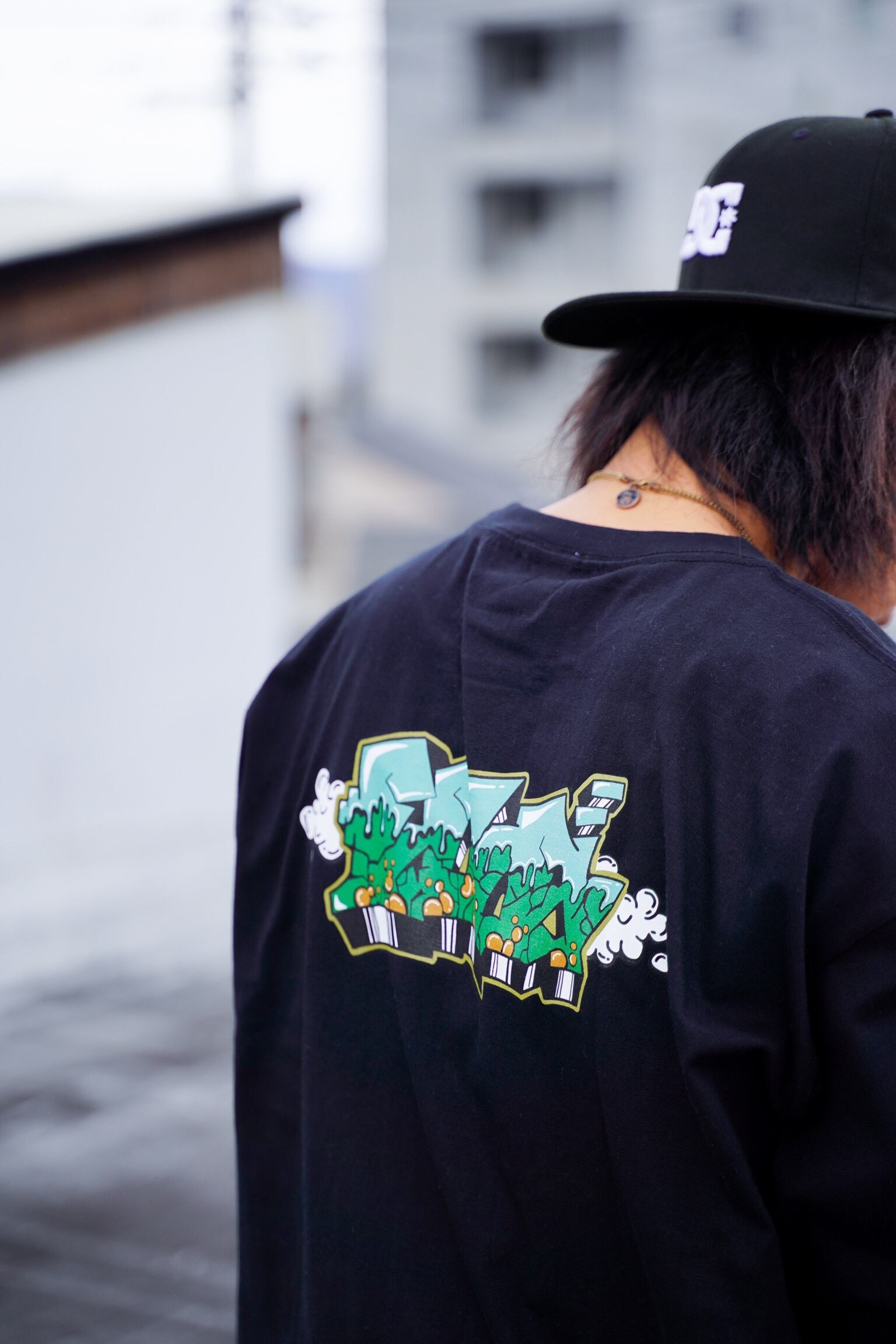 生地は6.2ozの比較的厚めのTシャツに背面インクジェットプリント、左胸に刺繍を施しております。